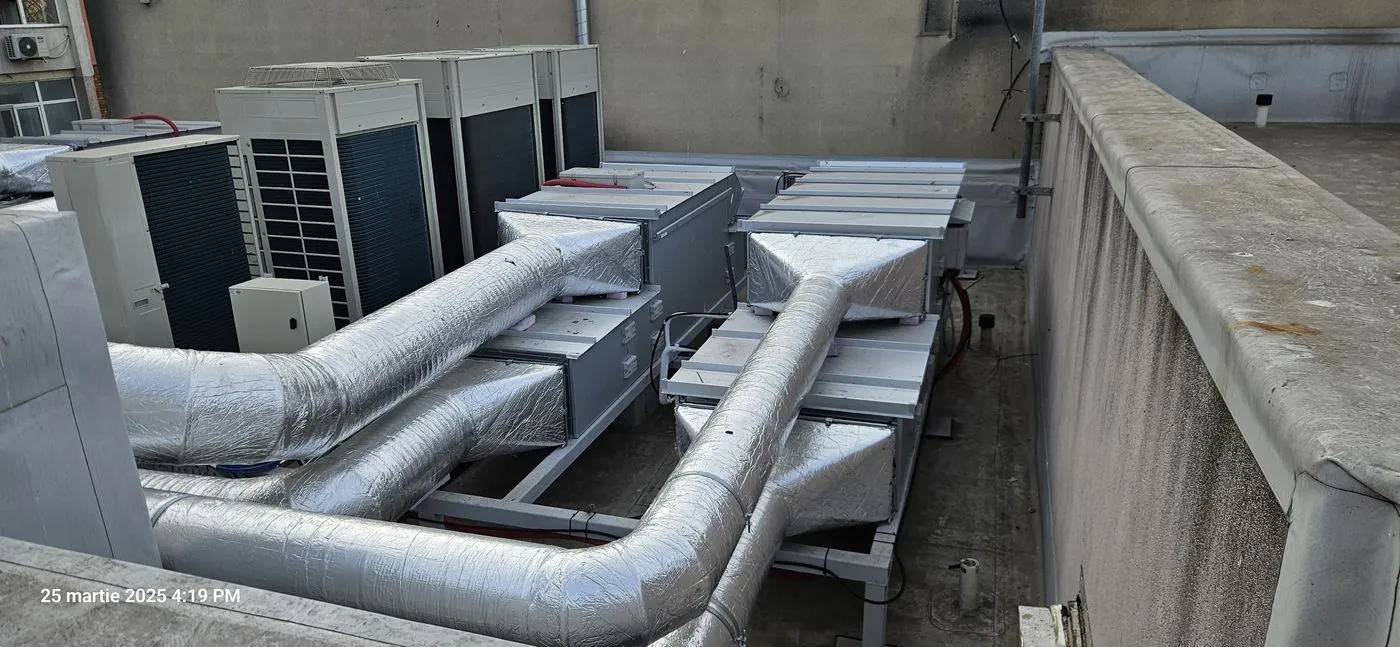 Tubulatura de ventilație a fost realizată din oțel galvanizat marca Lindab, asigurând rezistență și eficiență pe termen lung. În interior, au fost instalate terminale pentru încălzire și răcire sub formă de casete de tavan Daikin, cu agent de răcire pe bază de freon, pentru a asigura confortul optim în toate spațiile clinicii.